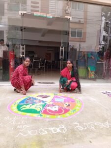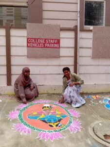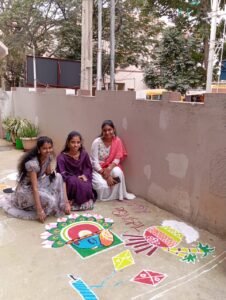 Students participated enthusiastically in rangoli and mehendi competitions, showcasing creativity and traditional art. Indoor games like chess and carroms encouraged focus and friendly competition. Adding to the excitement, students also participated in a cricket event conducted by ETV, highlighting sportsmanship and team spirit.